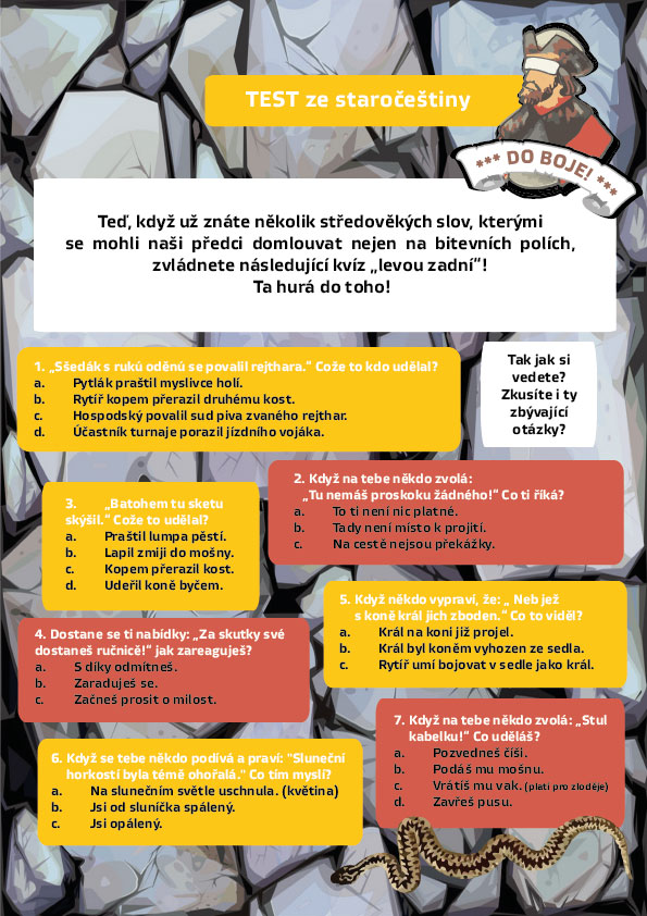 Teď, když už znáte několik středověkých slov, kterými se mohli naši předci domlouvat nejen na bitevních polích, zvládnete následující kvíz „levou zadní“! Ta hurá do toho!